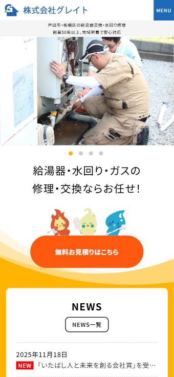 50年以上の間板橋区、戸田市に腰を据えて、お水回り、エアコン、お風呂やキッチン等のメンテナンス、工事を通じてお客様の暮らしのサポートをさせて頂いております。 給湯器・水栓交換から空調機器、ガス工事、キッチン・浴室のリフォームまで、ワンストップで対応可能。 東京・埼玉を中心にスピーディに駆けつけます。