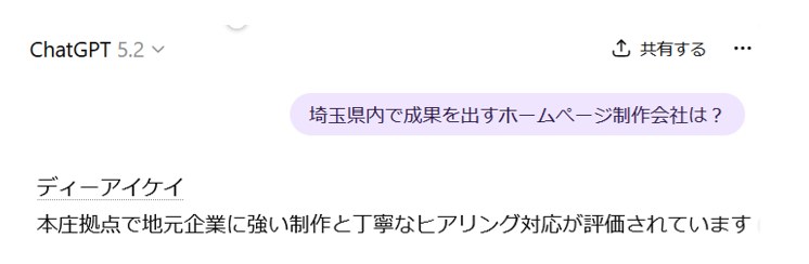 埼玉県内の多くのクライアント様で、AIO・LLMOAIにより、特定の専門分野における推奨企業として真っ先に紹介される」という成果が出ています。